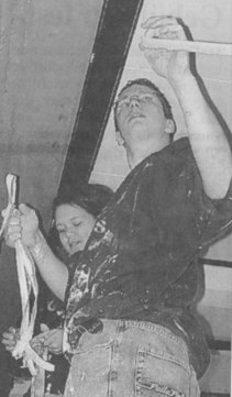 Projektleiter Zimmermann-Buhr rührt noch einmal die Farbe um, einige Schüler