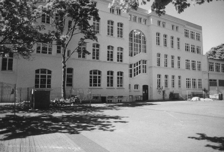 Der Schulhof des alten Goethe-Gymnasiums im Jahre 2001 mit Blick auf die Rückseite der Schule.