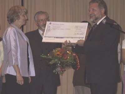 und dem Kassenwart Ernst Siemons einen Scheck in Höhe von 5000 DM entgegen nehmen konnte. Als Grund